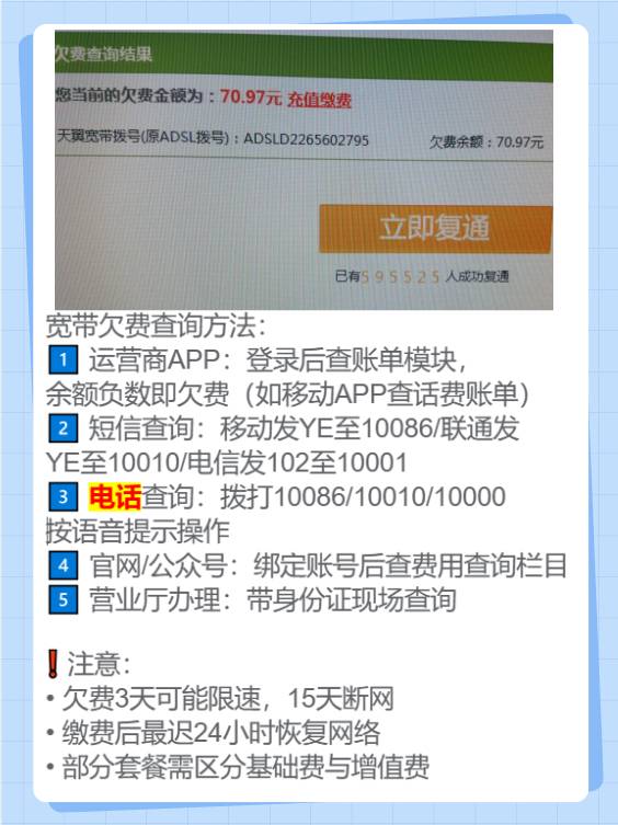 手机号码欠费查询是用户通过特定方式查询其手机号码的欠费情况,包括欠费的金额和期限等。这一服务帮助用户了解并管理自己的通信费用,避免停机或产生额外的违约金。查询方式多样,可线上或线下进行。...
